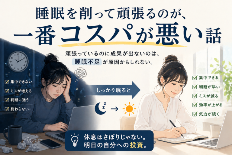 「もう少しだけ」と削った睡眠が、翌日の集中力・判断力・気力を根こそぎ奪っていることがあります。